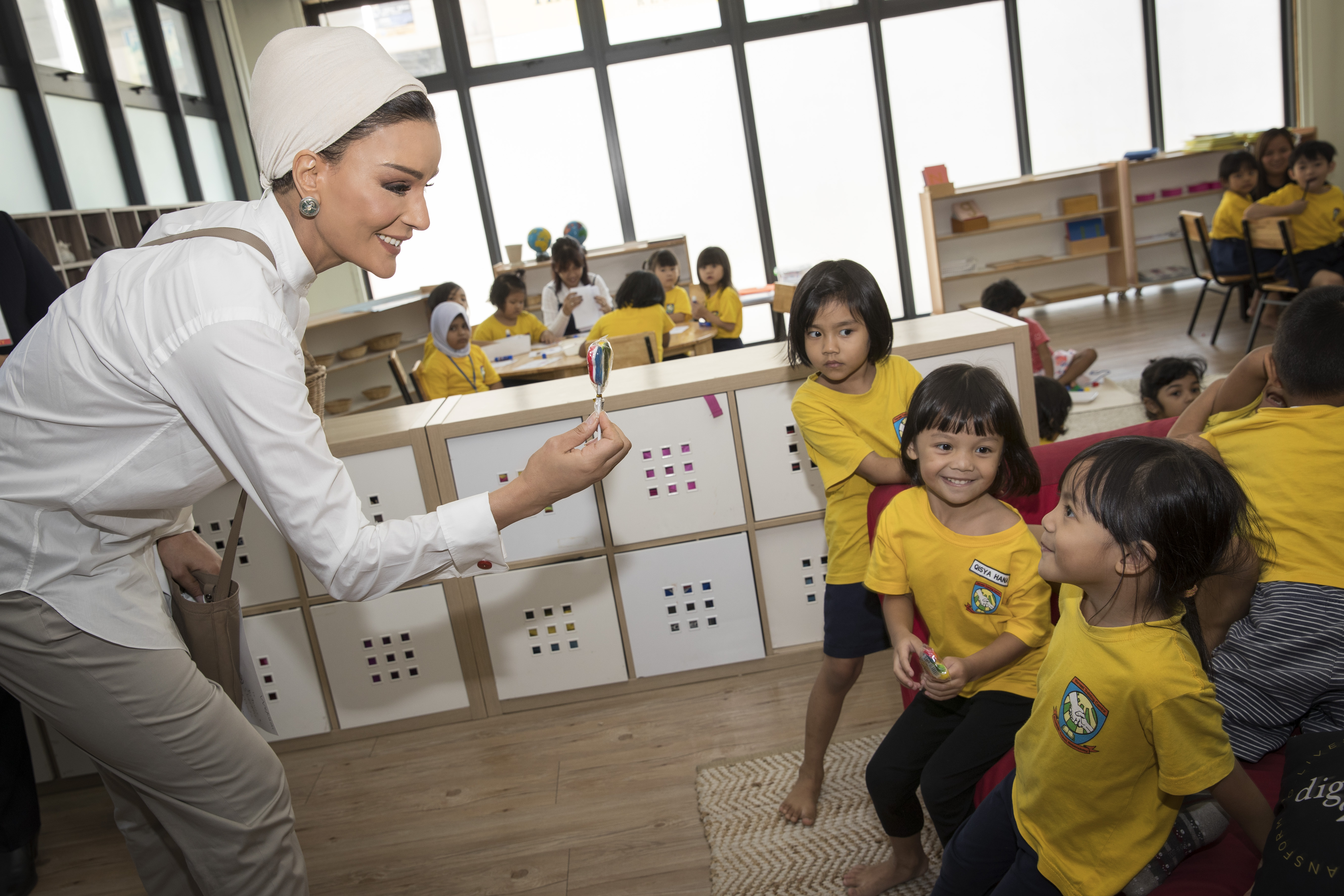 A champion of Arabic culture and heritage, Her Highness supports the Arabic language and its use within her many programs. Her flagship property project, Msheireb, incorporates traditional design and sustainability in a large-scale urban development in central Doha. In January 2024, she established the Al-Mujadilah Center & Mosque for Women, offering religious, developmental and social programming to Muslim women to study, communicate and worship together.